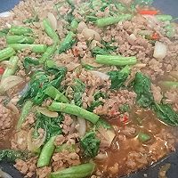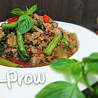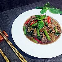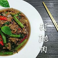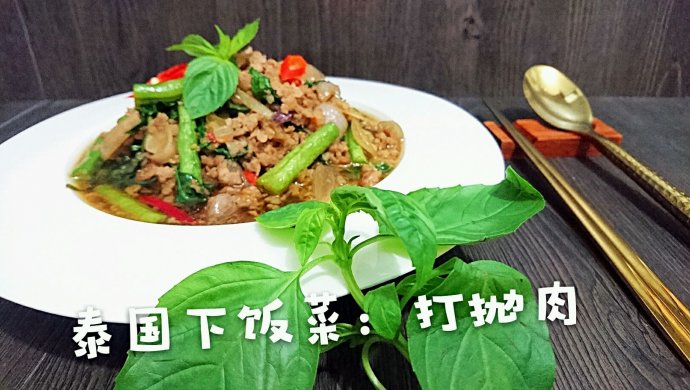 Thin meat, pronounced in Thai: kato, Gra-Prow. So this dish is translated as: beaten meat. The green leaves are the thrown leaves, Holy Basil holy basil, or Thai basil. It is more difficult to buy in China, you can replace it with regular basil or sweet basil, which has a slightly different taste and aroma. Add a poached egg with a bowl of white rice, it is a Thai meal, a home-cooked dish that every household often eats.
