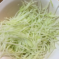 Peel the green melon first, and then insert it into silk