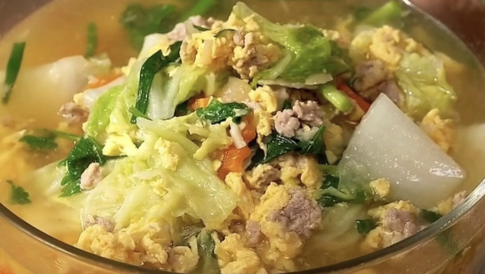 Thai pork and vegetable egg soup