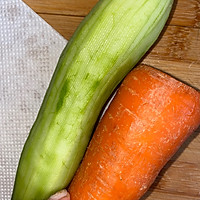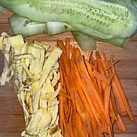 Sliced cucumbers or shredded are fine, and carrots are shredded