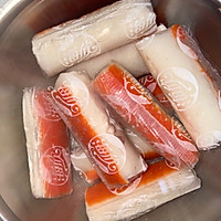 Crab sticks, preferably with Thai or Korean ones, have a better texture. If you can’t buy it during the epidemic, use Haixin’s.