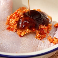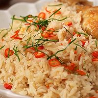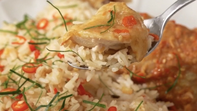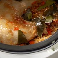 Then put the chicken thighs on the surface of the rice and add the lemon leaves