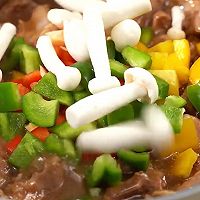 Add green, red, yellow and mushrooms