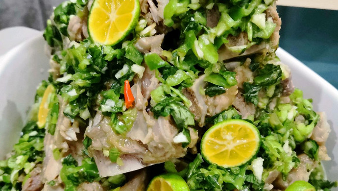 Pile the boiled keel into a mountain and pour over the toppings. Unique flavor.