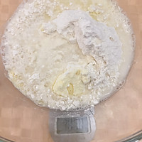 200g all-purpose flour plus 20g whole wheat bread flour, add 30g milk powder, 2g salt and 20g oil and pour into a basin