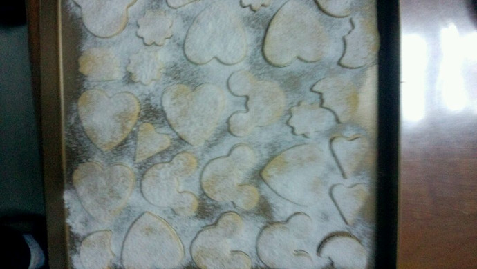 Soften the butter, add powdered sugar, add the powdered powder! After stirring into a ball, put a fresh-keeping bag and roll it into a 1cm thickness, and press out the shape with a mold!