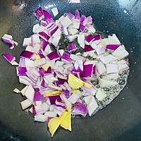 Heat a little oil in a pot over medium heat, add ginger slices, add onions and stir-fry until fragrant, stir-fry for about 1 minute, the onion is transparent and soft
