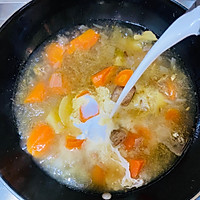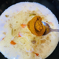 After the pressure cooker is up to the time, pour it into an ordinary pot, if there is a lot of water, pour out half of it and add coconut milk, if you like more soup, pour out a little water, add a small spoonful of rock sugar, white sugar is also acceptable. Sometimes I pour the water clean, and it tastes just like a Thai restaurant. Sometimes if you want to make rice, leave more soup and pour in the coconut milk.