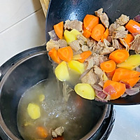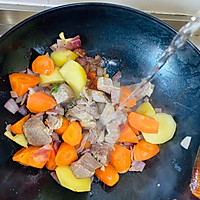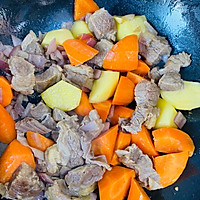 Add two spoons of yellow curry paste, bring to a boil over high heat, stir more, but be careful not to crush the carrot potatoes (if you have a heavy mouth, you can add some salt, I like to eat a little sweet curry beef so I didn’t add salt)