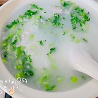 Simmer the rice over low heat to thicken and bloom, add shredded meat and vegetable leaves, add an appropriate amount of water, salt, and continue cooking.