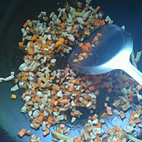 Add oil and stir-fry the meat, carrots, and mushrooms, and sprinkle an appropriate amount of pepper to remove the fishy smell and enhance the freshness.