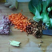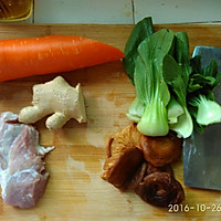 Cut the meat, carrots, and mushrooms into small cubes, shred the ginger (pick it out when it is convenient to drink), and put the greens at the end before cutting.