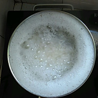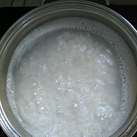Wash the rice, put five or six times the water, bring to a boil over high heat and turn to low heat.