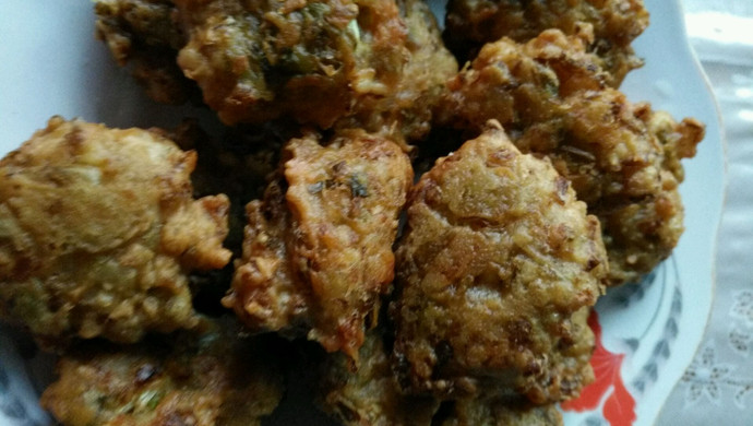 Stack the vegetable leaves into a fine powder, add flour and seasonings, and stir into a paste that is neither dry nor thin.