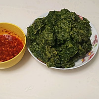 Add flour and stir as shown, prepare garlic, vinegar, salt, oil and chili peppers, and make a juice.