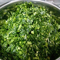 Chop the greens and control the water, too much water will use a lot of flour (from the first experience)