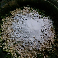 Add the quick-cooking oats and stir well, the oats can help you absorb a lot of water, and it is a whole grain that is good for weight loss! (The white part is a little glutinous rice flour left over from the dormitory, so as not to waste it, pour it together, don’t learn from me)