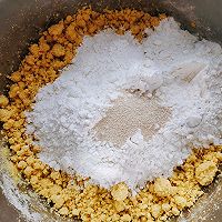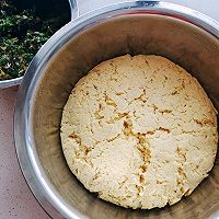Cornmeal is scalded with hot water to form a dough, and flour and yeast water are added to knead the dough