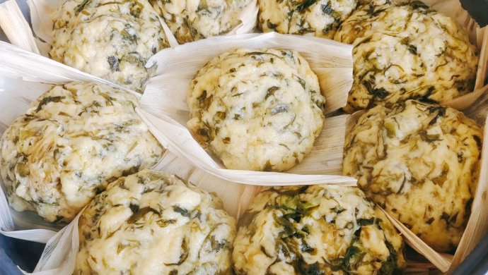 Apply some oil to your hands, make the wild vegetable dough into your favorite shape, and let it rise for 20 minutes