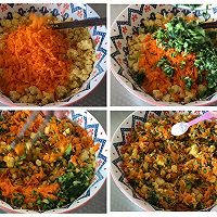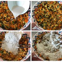 Add chopped carrots and rapeseed to the cooled cornmeal. After mixing well, add 1 tablespoon of baking soda.