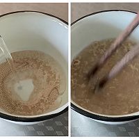 Add the melted yeast water and mix well, then add the white noodles. Stir until the flour is completely integrated with the other ingredients.