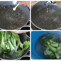 Add 1 tablespoon of salt to a pot of boiling water and pour in a little cooking oil. Blanch the cleaned rapeseed for about 1 minute, remove the cold water.
