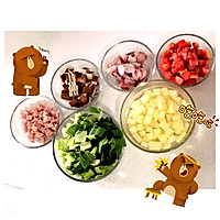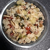 Pour oil into the pot, pour all the prepared dishes into the pot and stir-fry, add water (add according to the ratio of steamed rice)