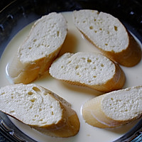 Put the cut baguette in the mixed milk and soak it thoroughly. If you like the chewiness of baguettes, don’t soak them for too long. I don’t like chewiness, so I soaked it a little more.