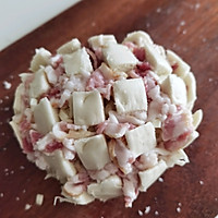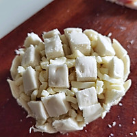 Stuff the cheese crumbs into the cracks of the steamed buns