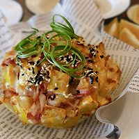 Bake the air fryer at 200°C for about 8 minutes, open it from time to time to observe, and bake until the cheese is melted and browned.