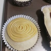 Put it in a 60g paper mold, fermented twice as large, and squeeze the Mexican sauce on the surface.